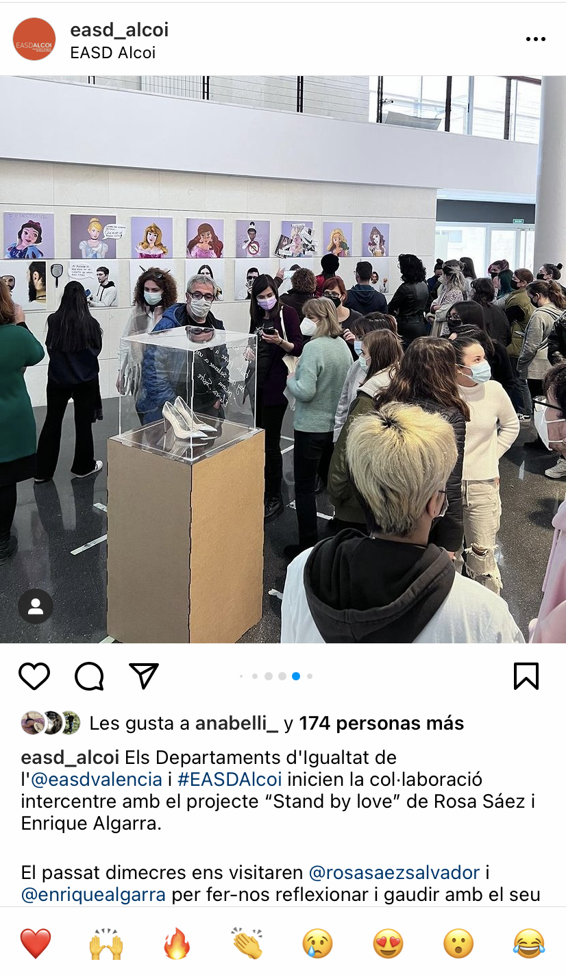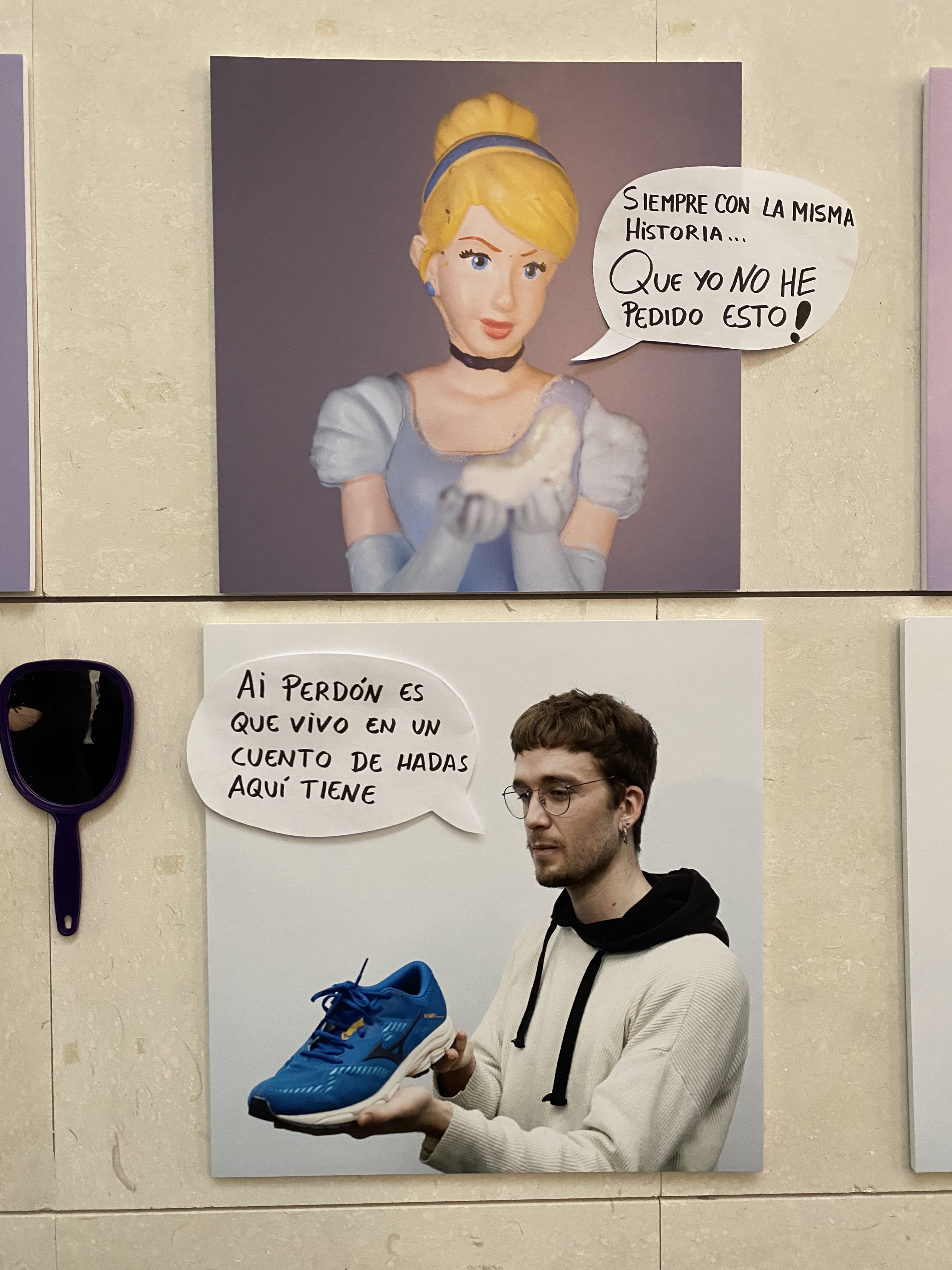 Resumen: La exposición recoge la muerte, de forma simbólica, de la princesa que habita en nosotras y la resurrección de una mujer empoderada que quiere cambiar el cuento, contar historias nuevas con una mirada feminista, deshacerse del zapato de cristal y calzarse sus propias zapatillas para caminar en otra dirección.