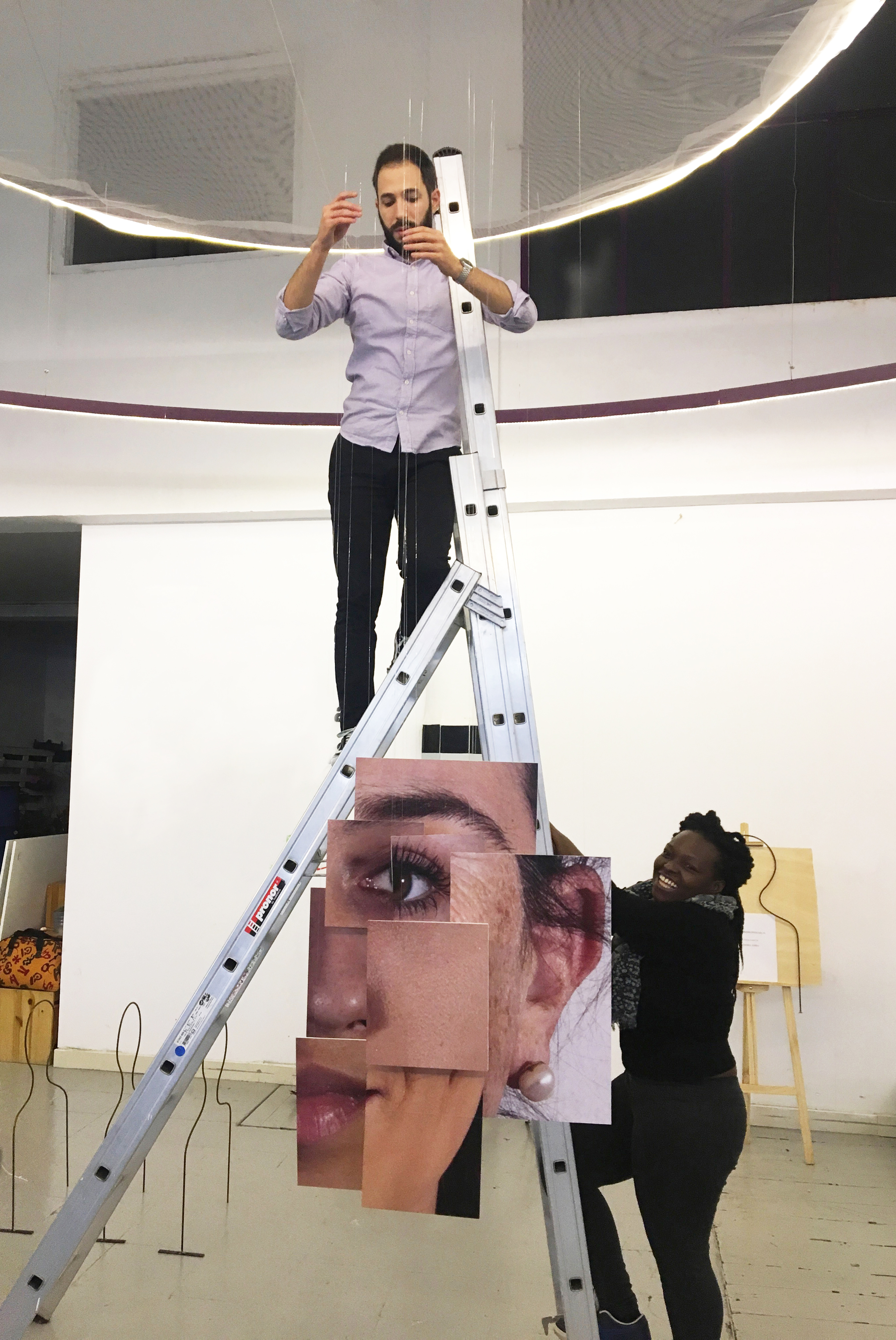 Resumen: Trabajando a partir de la idea de que toda la sociedad tiene que tomar conciencia y luchar para erradicar cualquier tipo de violencia contra las mujeres, esta instalación plantea una nueva forma de diseñar con perspectiva feminista y tejiendo redes de sororidad. Desaprender comportamientos, roles y estereotipos machistas es clave para construirnos de nuevo en un proyecto grupal en el que todos seamos parte y proceso del cambio. La pieza está compuesta por 22 fragmentos de los rostros del alumnado que conforman una nueva imagen de mujer.