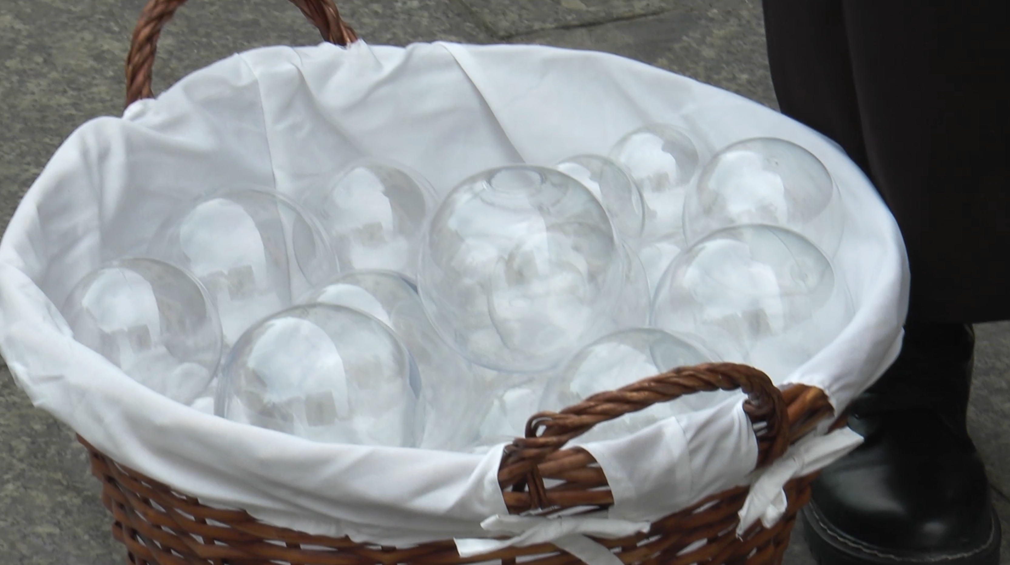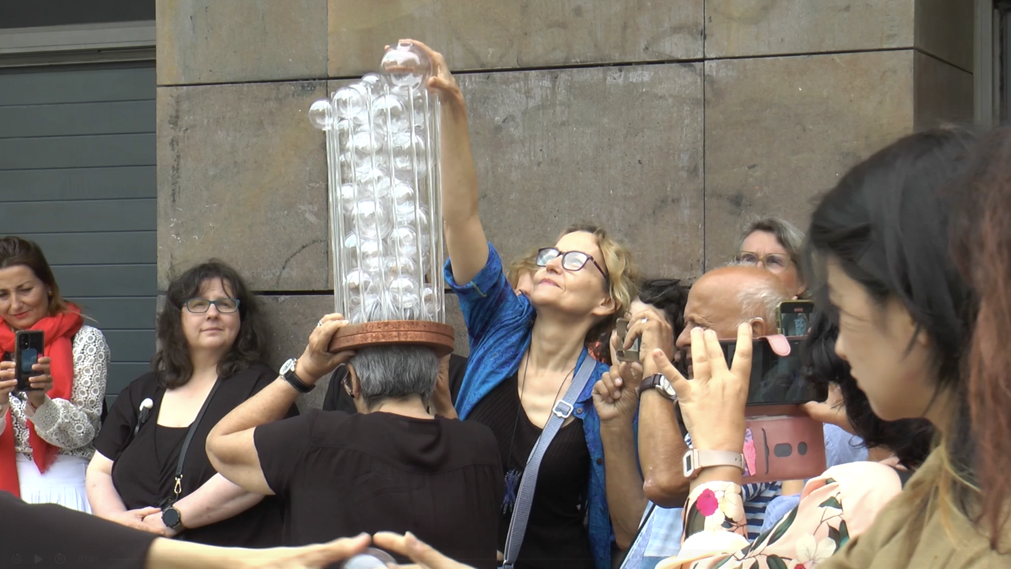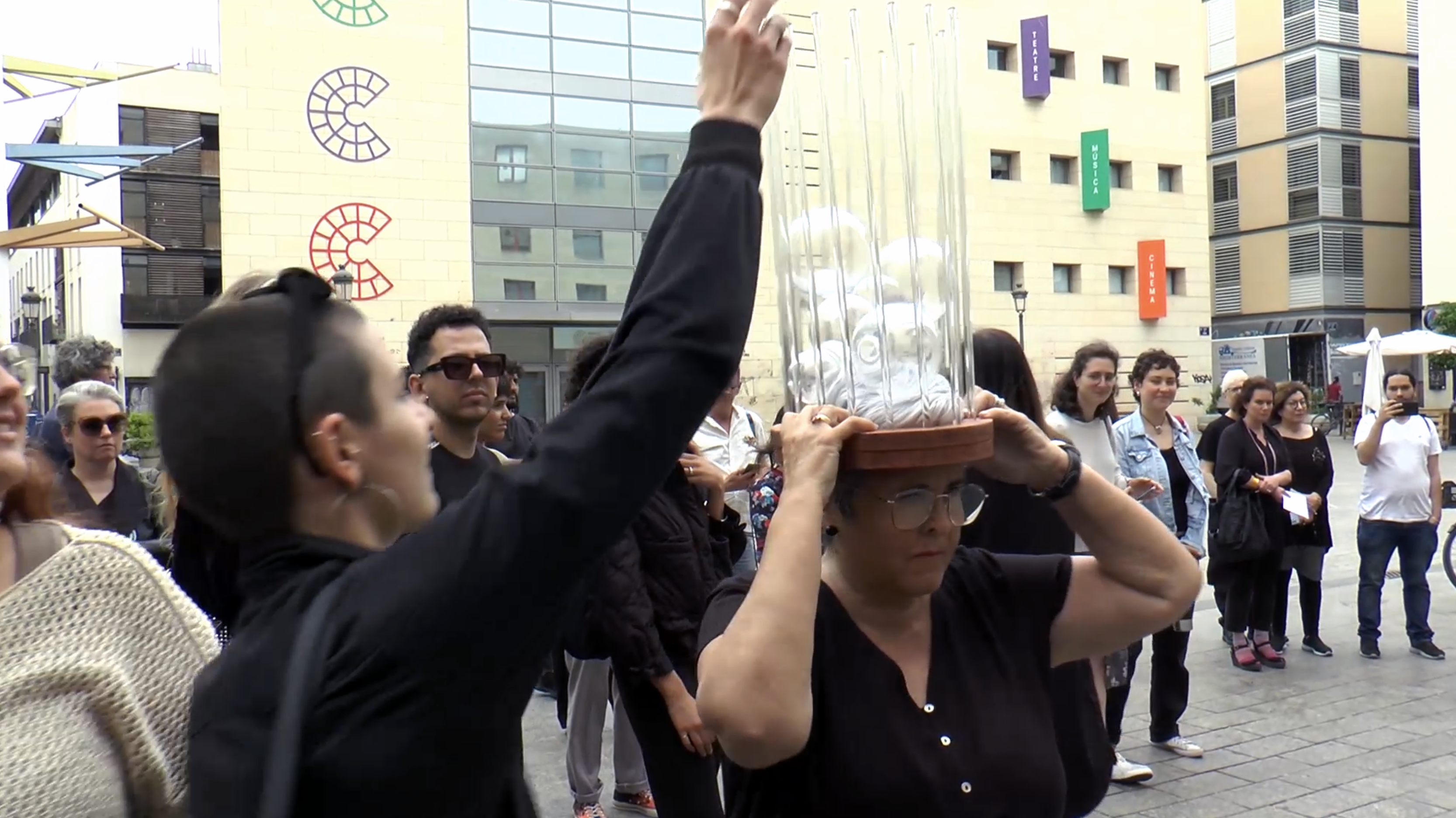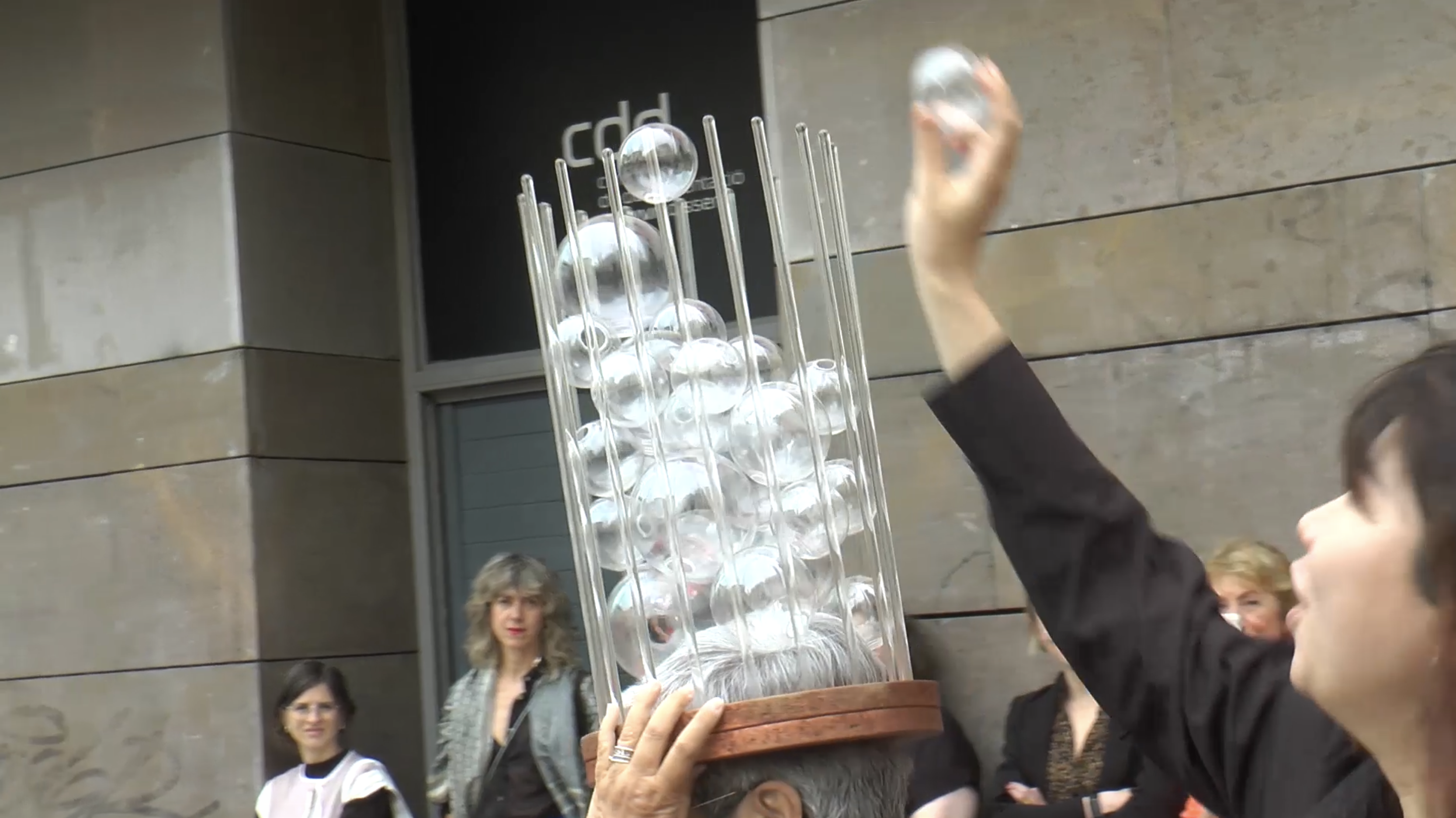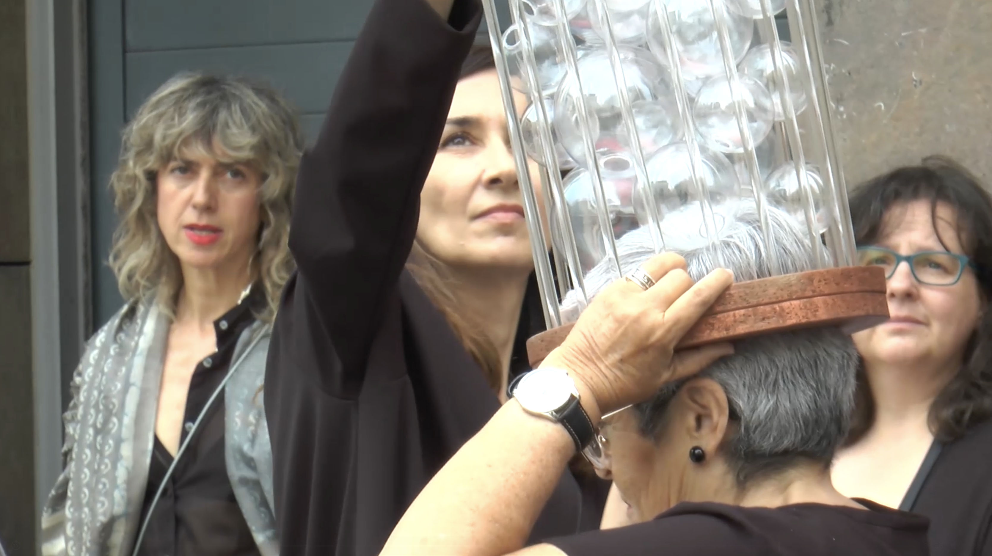 Las artistas interactúan con el público, invitándolo a depositar, en una pieza de cristal a modo de corona que lleva una de ellas sobre su cabeza, bolas transparentes que hacen alusión a esa sobrecarga. Este acto busca hacer tangible para otros la pesadez que normalmente permanece invisible y subestimada.