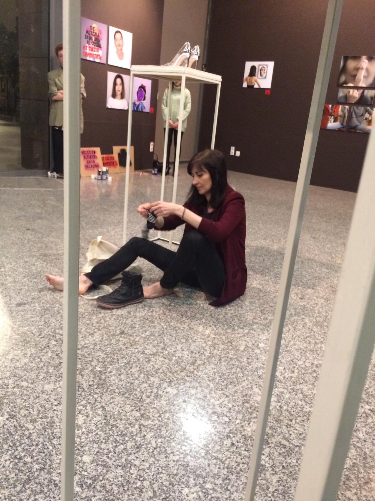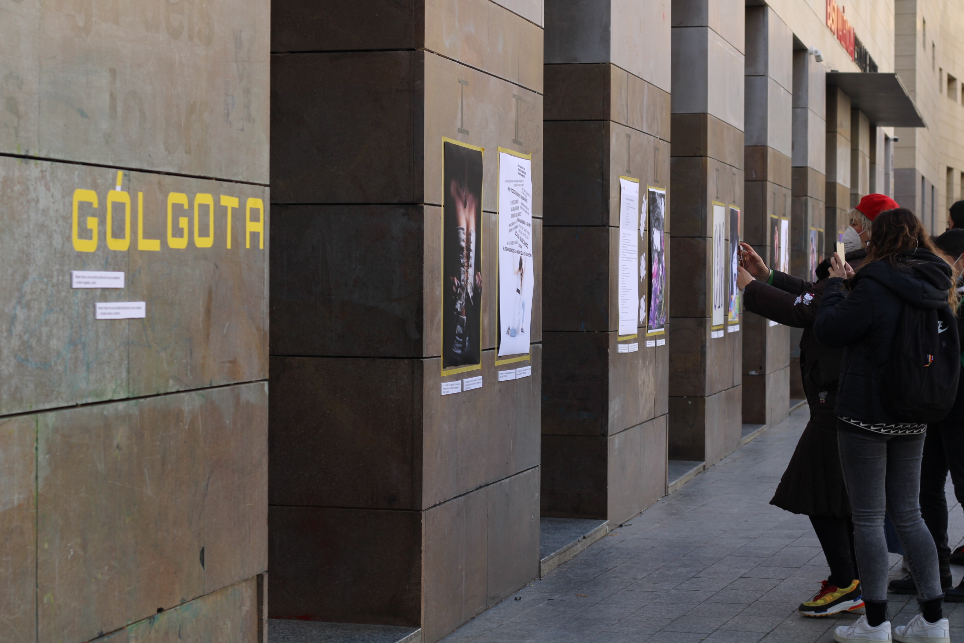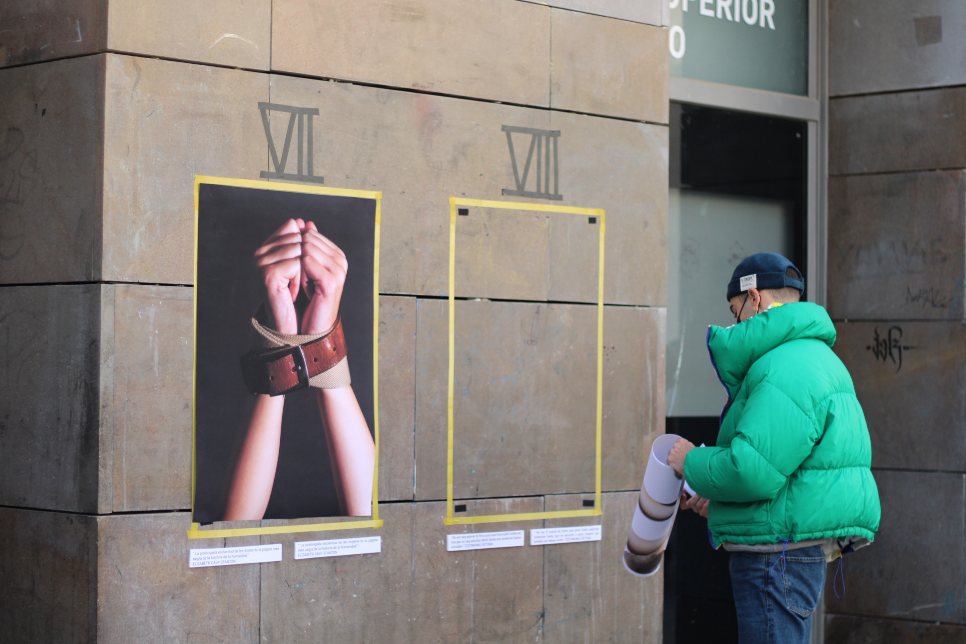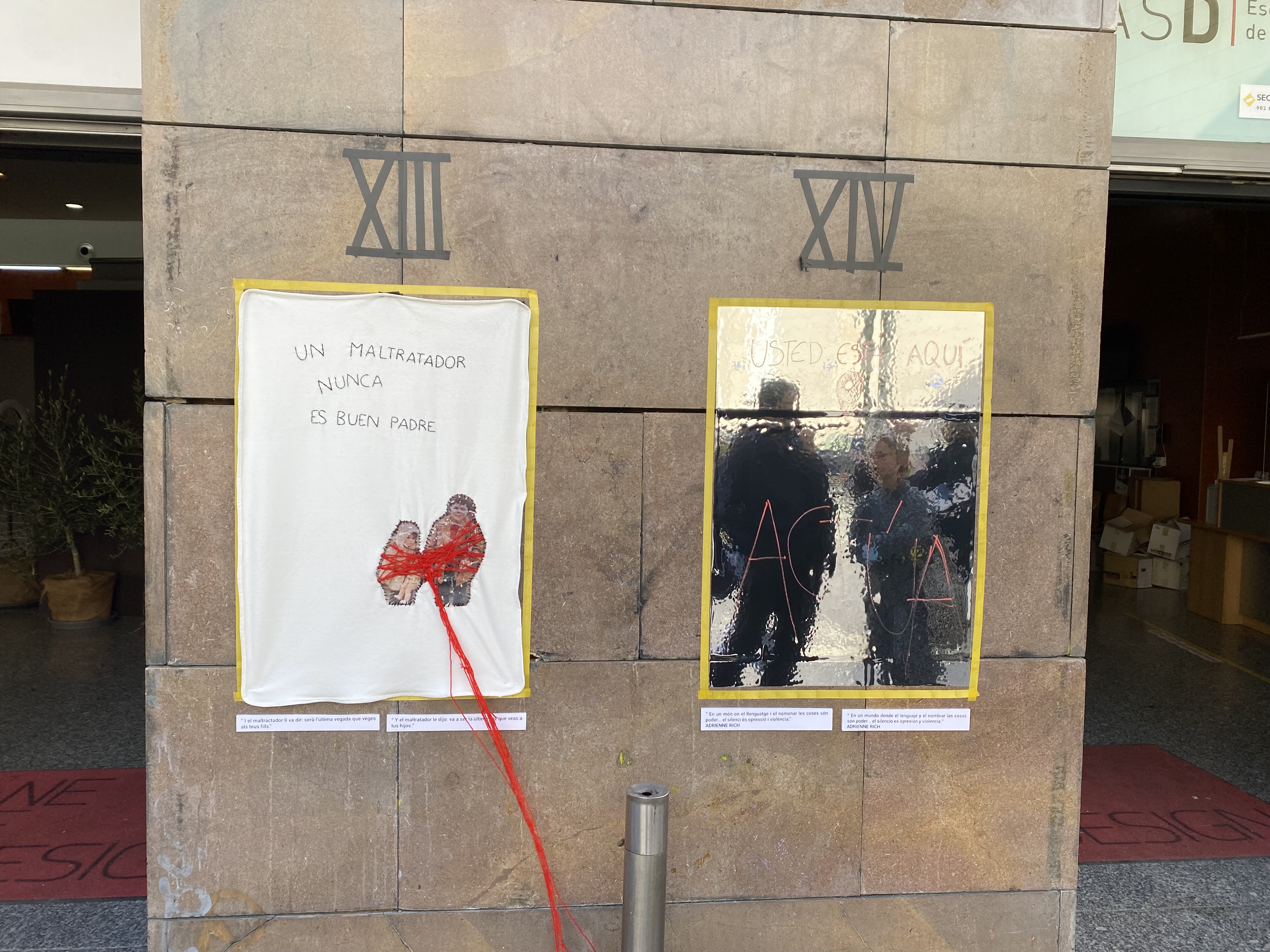 En este proyecto expositivo-performativo se intervino en la fachada de la escuela y, a modo de vía crucis, con sus 14 estaciones, se representaron distintos tipos de violencia ejercida contra las mujeres, desde la simbólica hasta la vicaria, pasando por la sexual, la reproductiva, la institucional, etc.