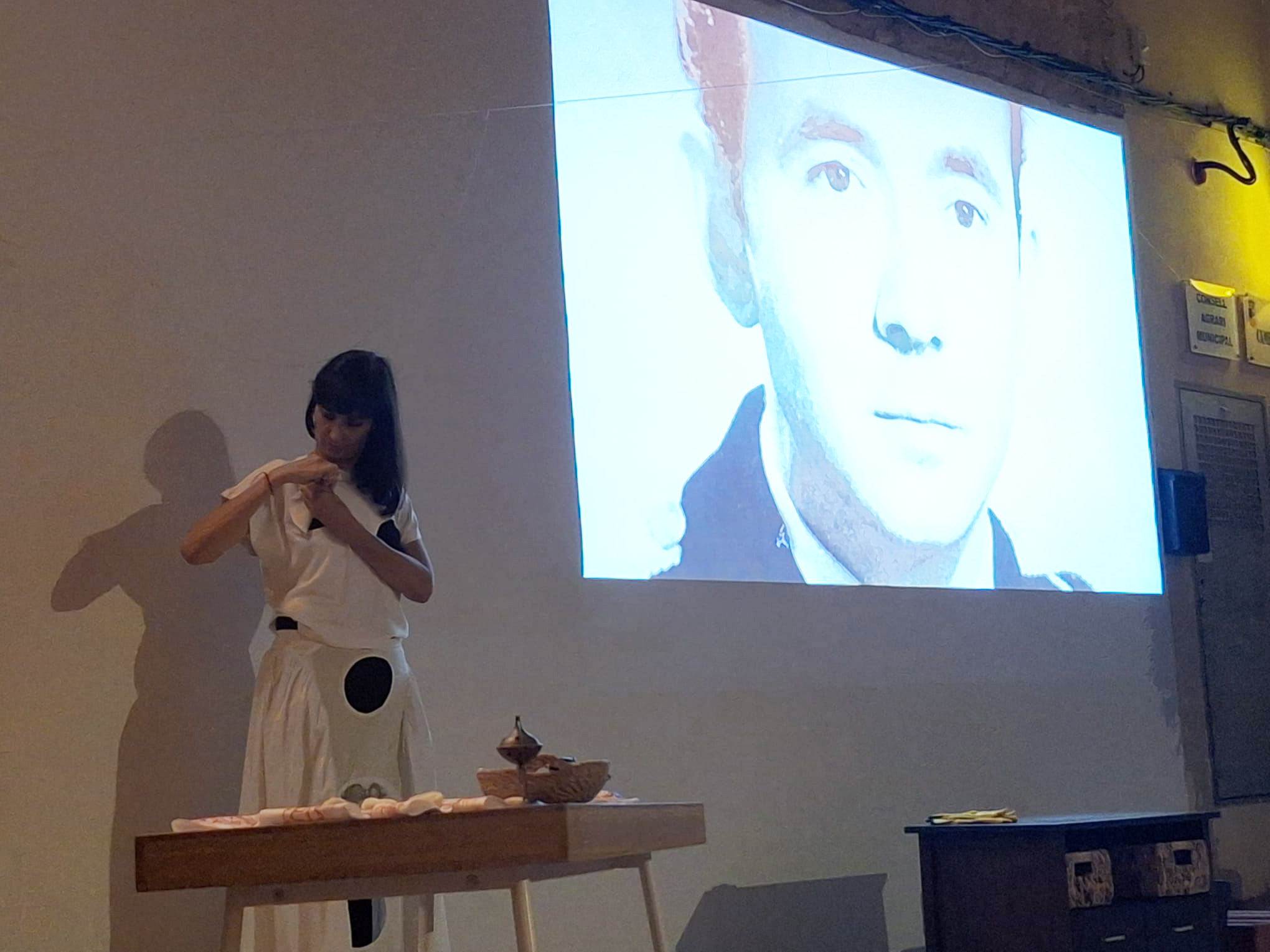 En la acción el cuerpo, la imagen y el sonido se emplean como elementos de reflexión, de trabajo y de representación en una puesta en escena de memoria expandida y de intimidad compartida.