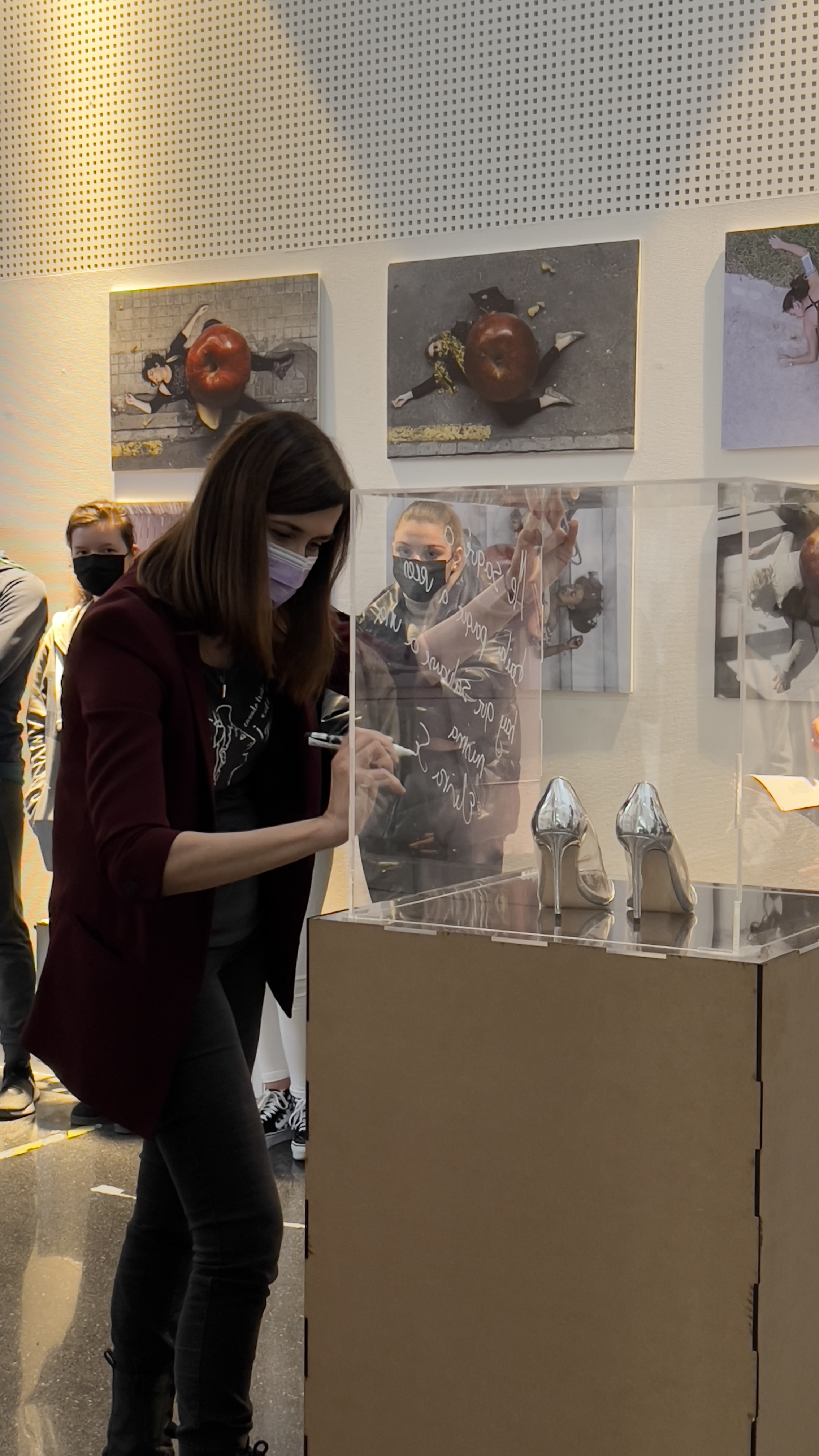 Cada alumna y alumno trabajó en una estación trasladando un tipo de violencia a una imagen fotográfica, collage o con otra técnica. Debajo de cada imagen unas frases completaban las estaciones y complementaban su significado.