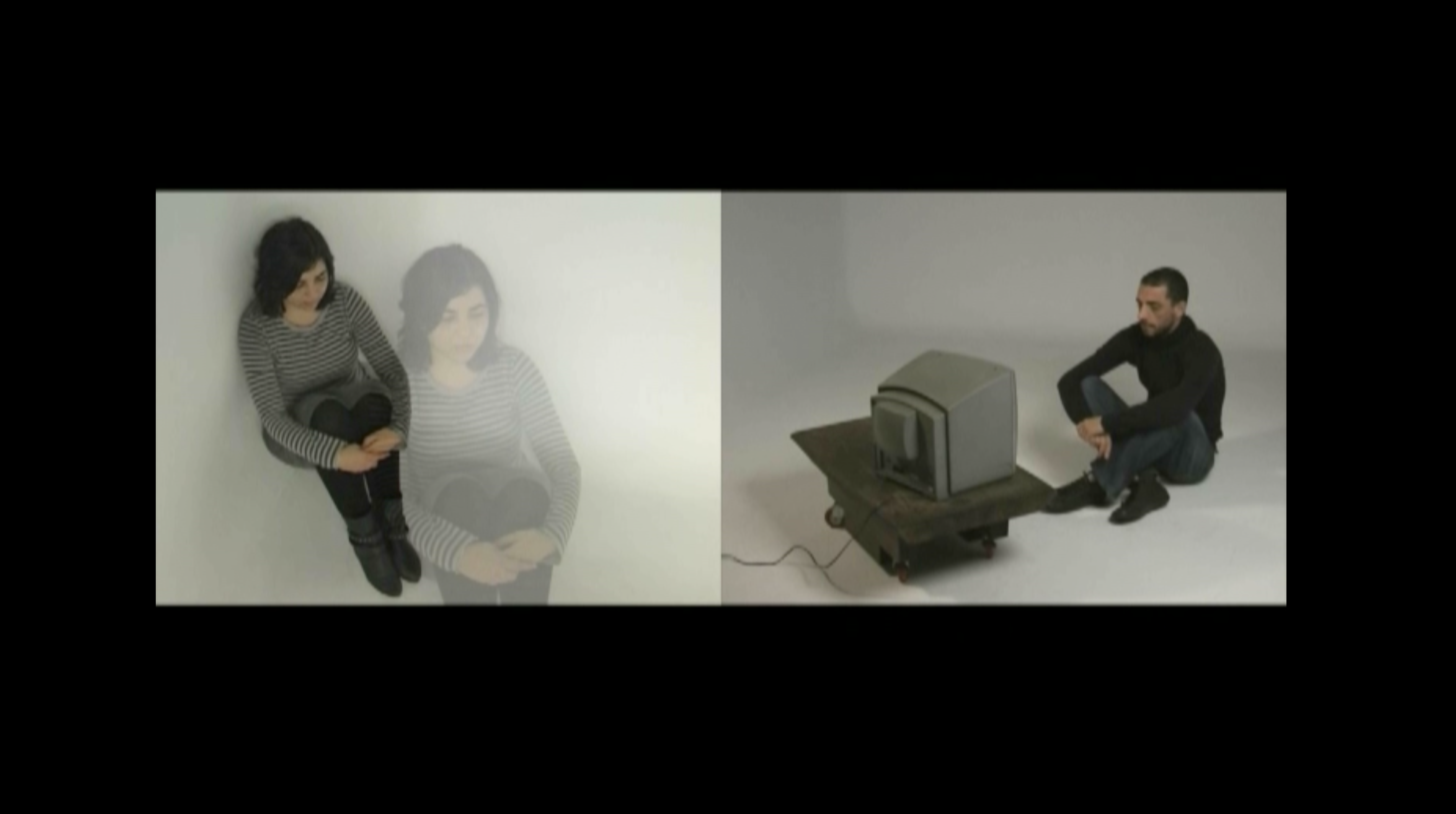 Dos personas intentan dialogar conectadas únicamente por sonidos distantes y mensajes que nunca llegan a ser completamente comprendidos.